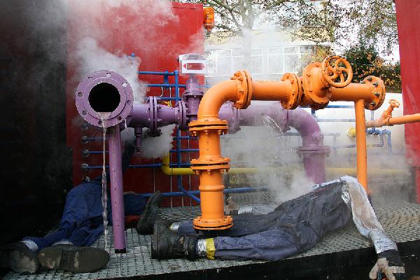 Als die Spezialisten eintreffen, sind bereits vier der Verletzten in Sicherheit gebracht worden, doch zwei Arbeiter liegen noch immer in der beschädigten Anlage, aus der die gefährliche Flüssigkeit noch immer austritt. Nachdem sie sich mit speziellen Schutzanzügen ausgerüstet haben, können die Trupps auch die beiden letzten Personen retten und mit dem Abdichten der Leckagen beginnen. Auch die Gefahr, die von der Flüssigkeit ausgeht, steht inzwischen fest: Sie ist brennbar und entwickelt giftige Dämpfe.