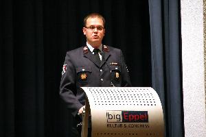 Auch Bürgermeister und Chef der Feuerwehr Fritz-Hermann Lutz bestätigte das: "Wenn wir die ganzen ehrenamtlichen Vereine und Institutionen nicht hätten, wäre unser Leben ein sehr armes Leben" erklärte er. In guter Tradition rief er nochmal die am Ehrungsabend in der vorigen Woche Geehrten und Beförderten noch einmal zu sich auf die Bühne. Kevin Scupin, Steven Bungert und Andreas Kühn wurden aus der Jugendfeuerwehr in die Einsatzabteilung aufgenommen. Markus Braun, Thomas Meyer und Thomas Saar wurden vom Oberfeuerwehrmann zum Löschmeister, Alfons Egler vom Löschmeister zum Oberlöschmeister befördert. Eine Auszeichnung für 20 Jahre Feuerwehrdienst erhielten Thomas Saar und Christian Horras, Markus Klaumann eine Ehrung für 25 Jahre Dienst in der Feuerwehr. Bürgermeister Lutz gab auch einen kleinen Ausblick auf das kommende Jahr: So erfolgt zur Zeit die Ausschreibung für einen neuen Gerätewagen Logistik, der im nächsten Jahr für den Löschbezirk Eppelborn beschafft werden wird.