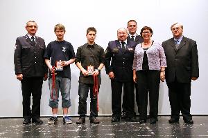 Der Förderverein konnte den beiden in die Einsatzabteilung übernommenen Jugendlichen ein Begrüßungsgeschenk überreichen