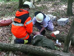 Als abschließende Aufgabe mussten die Kräfte von Feuerwehr, THW und Deutsches Rotes Kreuz gemeinsam ein wildes Zeltlager im betroffen Waldgebiet evakuieren und Jugendliche und deren Betreuer, dargestellt durch Mitglieder der Jugendfeuerwehr, versorgen und zu den Rettungswagen transportieren. Um jedoch zu den Eingeschlossenen vordringen zu können, war es erforderlich, zuerst durch den Brand umgestürzte Bäume zu beseitigen. Durch das unwegsame Gelände gestaltete sich dieser Abschnitt als sehr schwierig und zeitintensiv.