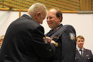 Für 50 Jahre Mitgliedschaft wurden Löschbezirksführer Oberbrandmeister Günther Neu sowie Hauptlöschmeister Herbert Hahn geehrt. Als Mitglied der Alterswehr erhielt Hauptfeuerwehrmann Raimund Woll eine Ehrung für seine 60-jährige Mitgliedschaft. Der stellvertretende Löschbezirksführer und Kreisstabführer Brandmeister Stephan Rein wurde gleich mehrfach geehrt. Die Auszeichnung mit dem Feuerwehrehrenzeichen am Bande in Bronze erhielt er für seine 25-jährige Mitgliedschaft. Zudem wurde er mit der Ehrenmedaille in Bronze der Bundesverbände Deutscher Musikverbände und der Dirigentennadel in Gold der Bundesvereinigung Deutscher Musikverbände ausgezeichnet.