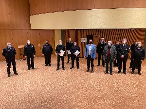 Der Brandinspekteur des Landkreises Neunkirchen, Michael Sieslack, ehrte Manuel Braun und Dominik Schallmo mit dem Bronzen Ehrenzeichen am Bande für 25 Jahre Dienst in der Feuerwehr, Thorsten Zawar erhielt für 35 Jahre Mitgliedschaft das Silberne Ehrenzeichen am Bande.