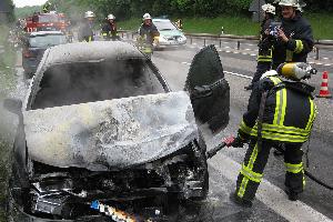 Ein Ersthelfer, der den Unfall bemerkt hatte, reagiert sofort und unternahm mit einem Feuerlöscher erste Löschversuche. Nachdem das Feuer weiterbrannte, wollte er vorbeifahrende Lkw anhalten, um mit deren Feuerlöscher den Brand zu löschen. Doch angeblich hatte keiner der Fahrer die vorgeschrieben Lebensretter dabei. Gemeinsam mit dem inzwischen eingetroffenen Wehrführer, der weitere Feuerlöscher in seinem Dienstfahrzeug hatte, konnten die Flammen bis zum Eintreffen der Löschfahrzeuge im Griff gehalten werden.