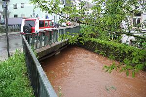 Der Pegel des sonst so friedlichen Wiesbach stieg auf ein bedrohliches Niveau an