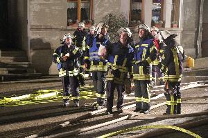 Beim Eintreffen der ersten Einsatzkräfte schlugen Flammen aus einem Fenster im ersten Obergeschoss. Alle Bewohner hatten das Gebäude zu diesem Zeitpunkt verlassen und waren in Sicherheit. Unter Atemschutz drangen Trupps in das Gebäude bis zum Brandherd vor. Das Feuer war augenscheinlich im Bereich der Elektroverteilung ausgebrochen und hatte schnell auf weitere Gebäudeteile und Räume übergegriffen.