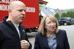 Zahlreiche verantwortliche Personen kamen an die Einsatzstelle. Bürgermeisterin Birgit Müller Closset, Ortsvorsteher Berhold Schmitt, Landrat Sören Meng und Landesbrandinspekteur Timo Meyer informierten sich persönlich vor Ort über den aktuellen Stand.