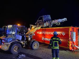 Mit mehreren Rohren und unter Atemschutzeinsatz konnte der Brand der sogenannten StreetScooter schnell gelöscht werden. Doch mit den Löscharbeiten an den E-Fahrzeugen war die Arbeit der Feuerwehr noch lange nicht zu Ende. Denn durch die große Hitze des Feuers war in den Akkus eine Reaktion in Gang gekommen, die weiter für eine große Hitzeentwicklung sorgen würde.