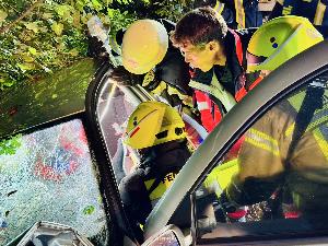 Die Feuerwehr sicherte die Unfallstelle, leuchtete sie aus und stellte den Brandschutz sicher. Zudem wurde das Fahrzeug gegen ein weiteres Abrutschen gesichert. In enger Zusammenarbeit mit dem Rettungsdienst wurde der Fahrer noch im Auto medizinisch erstversorgt und anschließend schonend befreit. Er kam mit schweren, jedoch nicht lebensgefährlichen Verletzungen in ein Krankenhaus.