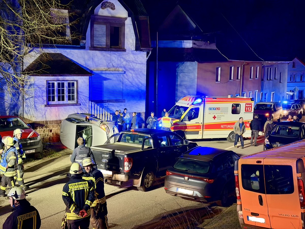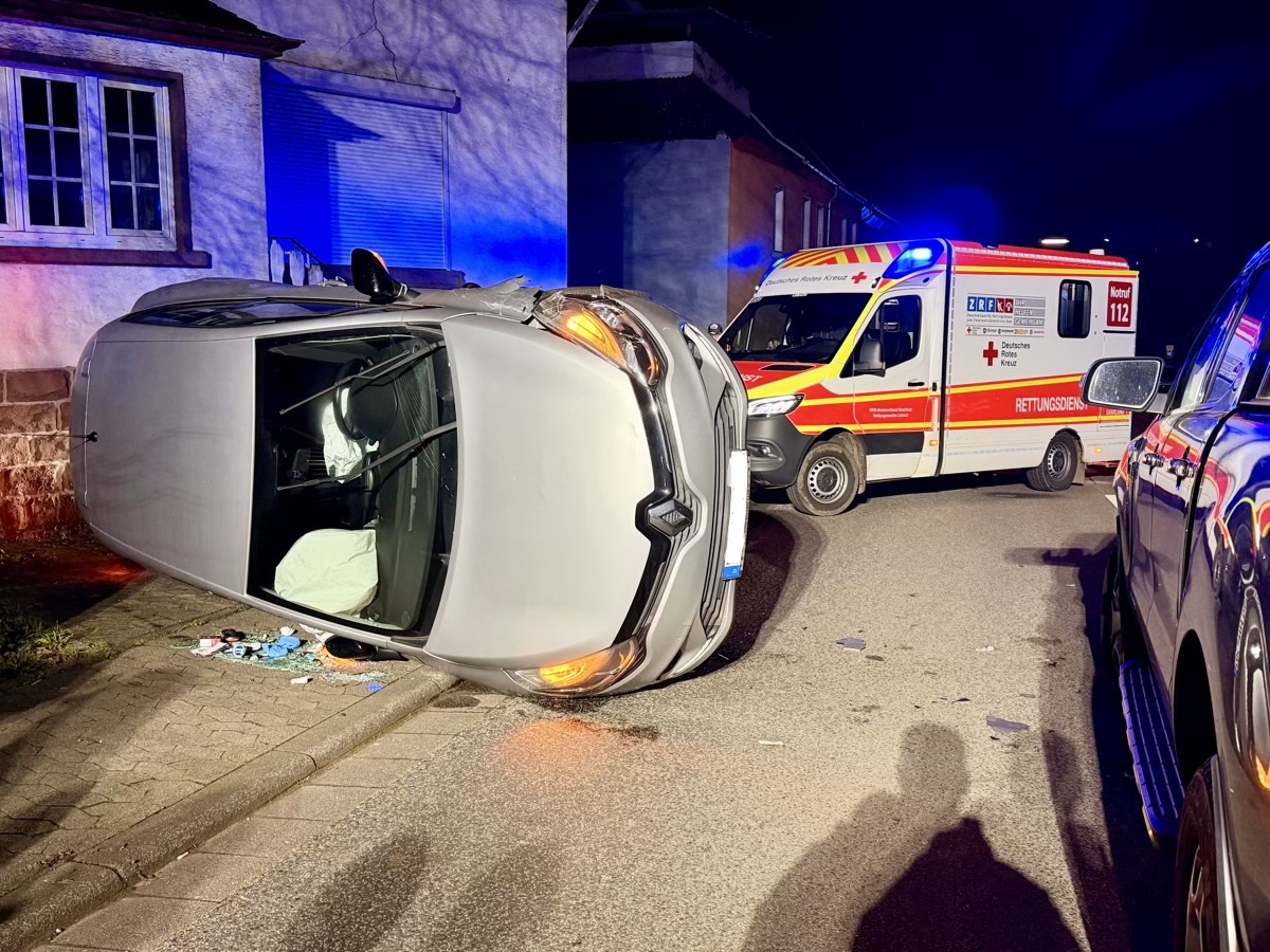 PKW bleibt nach Verkehrsunfall auf der Seite liegen