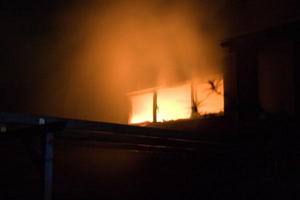 Gegen 02:15 Uhr wurden die ersten Einsatzkräfte aus Humes alarmiert. Bei der Ankunft an der nur wenige Meter neben dem Feuerwehrgerätehaus gelegenen Einsatzstelle drang bereits dichter Rauch aus dem Gebäude, Flammen waren hinter den Fenstern im Obergeschoss zu erkennen.