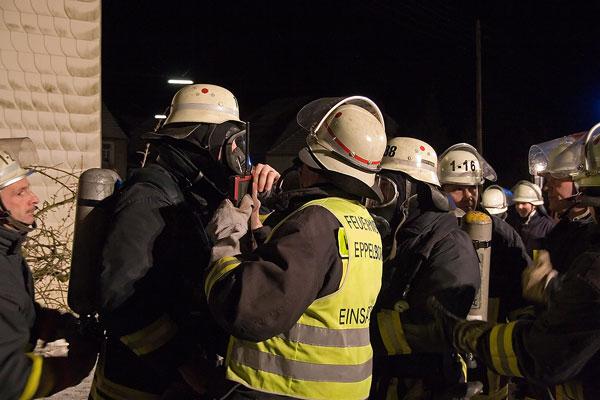 Auch Wehrführer Hermann Josef Recktenwald traf kurz darauf an der Einsatzstelle ein. Da davon auszugehen war, dass die Kräfte nicht ausreichen werden, ließ er nach einer ersten Erkundung den Löschbezirk Eppelborn nachalarmieren.