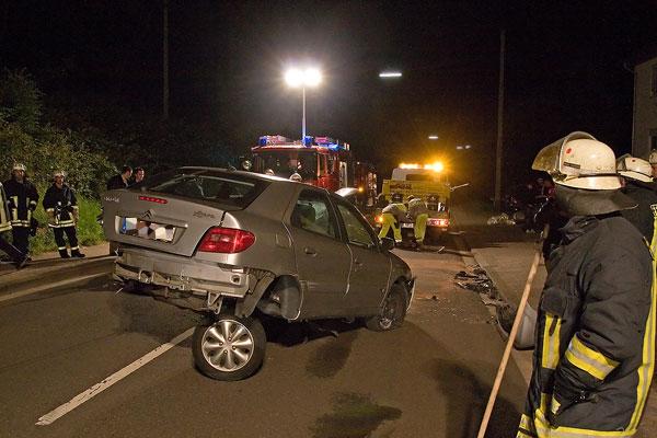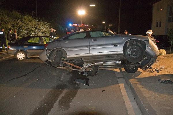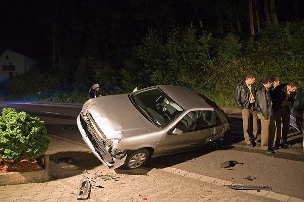 Eppelborn. Mit einem lauten Knall wurden die Anwohner der Kossmannstraße in der Nacht zum 07. Juli 2008 unsanft geweckt: Ein aus Richtung Wiesbach kommender Fahrer eines Citroen hatte auf der gerade verlaufenden Straße die Kontrolle über sein Fahrzeug verloren und war aus noch nicht geklärter Ursache auf zwei geparkte Fahrzeuge geprallt. Die Wucht des Aufpralls war dabei so heftig, dass an einem der Fahrzeuge die Hinterachse aus der Verankerung gerissen wurde.