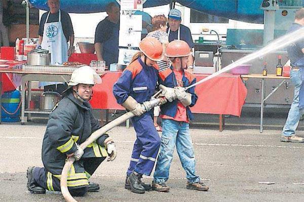 Im ersten Moment sah es so aus, als ob die beiden Feuerwehrmänner am vorderen Ende des Schlauches den Kräften des einschießenden Wassers nicht standhalten könnten. Aber die Zwei hielten tapfer bis zum Ende aus. Das war umso bewundernswerter, weil die Übung, die anlässlich der Tage der offenen Tür bei der Feuerwehr Dirmingen gezeigt wurde, die Jungs und Mädchen von der Jugendfeuerwehr betraf. "Die sind gerade einmal im Alter von acht bis zehn Jahren", weiß Löschbezirksführer Bernd Detzler zu berichten.