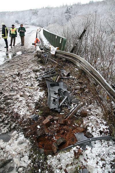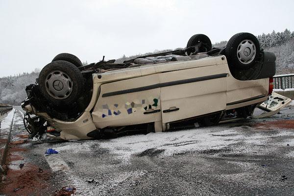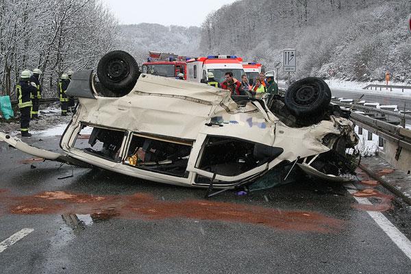 Eppelborn. In Höhe der Anschlussstelle Eppelborn ereignete sich gegen kurz vor zwölf Uhr Mittag am 22. November 2008 ein schwerer Verkehrsunfall: Ein mit zwei Personen besetzter Kleintransporter kam kurz vor der Autobahnbrücke über die B10 von der Fahrbahn ab und überschlug sich. Dabei wurde der 51-jährige Fahrer aus dem Fahrzeug geschleudert und mit schweren Verletzungen zwischen Beton der Brücke und Leitplanke eingeklemmt. Sein 24-jähriger Beifahrer konnte sich aus eigener Kraft mit leichten Verletzungen aus dem Wrack befreien.