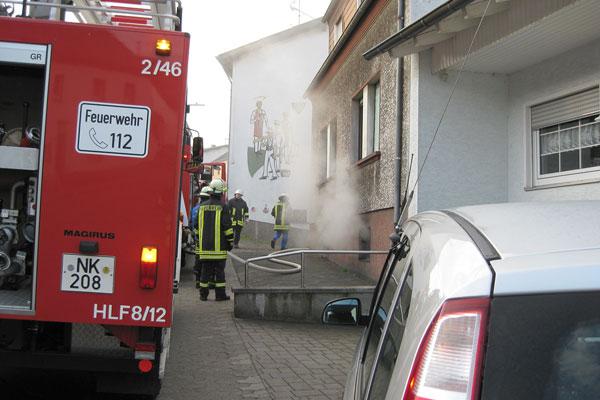 Die Schloßstraße musste während der Löscharbeiten zeitweise für den Verkehr voll gesperrt werden. Ein Feuerwehrmann erlitt bei den Arbeiten leichte Verletzungen. Die Feuerwehr war mit vier Einsatzfahrzeugen und 27 Mann vor Ort. Ebenfalls im Einsatz waren Kräfte des Rettungsdienstes und der Polizei. Der Einsatz war nach rund 90 Minuten beendet. Es entstand erheblicher Sachschaden.