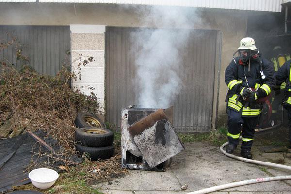 Glücklicherweise stellte sich heraus, dass alle Bewohner zum Zeitpunkt des Brandes das Haus verlassen hatten. So konnte sich die Einsatzkräfte auf die Brandbekämpfung konzentrieren. Ausgerüstet mit Atemschutzgeräten konnten die vorgehenden Trupps den Brandherd im Bereich eines Wäschetrockners im Keller des Hauses lokalisieren und löschen. Da der Brandrauch bis in sämtliche Räume des Hauses vorgedrungen war, kamen Drucklüfter zum Einsatz.