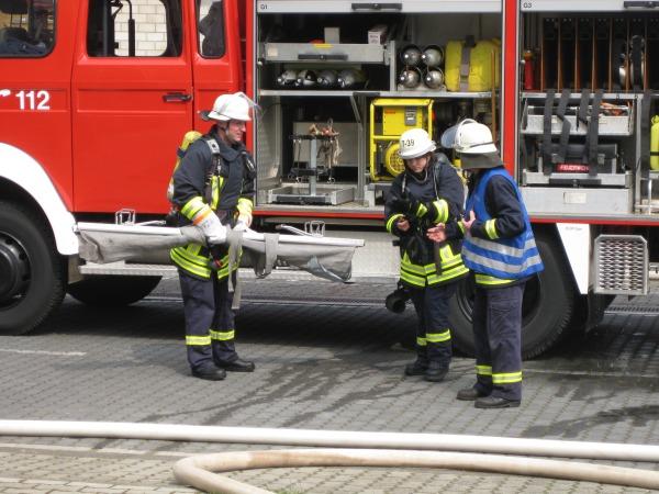 Beim Eintreffen an der Einsatzstelle stand Florian Eppelborn 7/18 (MTF, der im Löschbezirk Wiesbach auch als Zugführungsfahrzeug fungiert) vor einer gänzlich anderen Situation: Eine Person wurde vermisst und ein Kind war gerade am Fenster des oberen Stockwerks noch zu sehen. Mit dem „aufgeregten Nachbarn“ hatte der Zugführer von Florian Eppelborn 7/18 alle Hände voll zu tun. Nur über den rückwärtigen offenen Kellereingang war der Zugang ins Haus möglich. Mit schwerem Atemschutz ging der Angriffstrupp von Florian Eppelborn 7/43 (Löschgruppenfahrzeug LF 16) zur Menschenrettung vor. Der zweite Rettungsweg wurde von Florian Eppelborn 7/42 (Löschgruppenfahrzeug LF 8/6) mittels Steckleiter über den offenen Balkon vorgenommen. usw., usw.