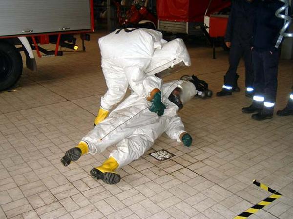 An zwei Wochenende wurden in dieser Ausbildungsveranstaltung zum Beispiel Grundlagen im Bereich Gefahrenstoffe, Kennzeichnung der Gefahrguttransporte, Vorgehen bei Unfällen so wie der Umgang mit Spezialgeräten und Schutzausrüstung theoretisch erarbeitet und auch praktisch umgesetzt.