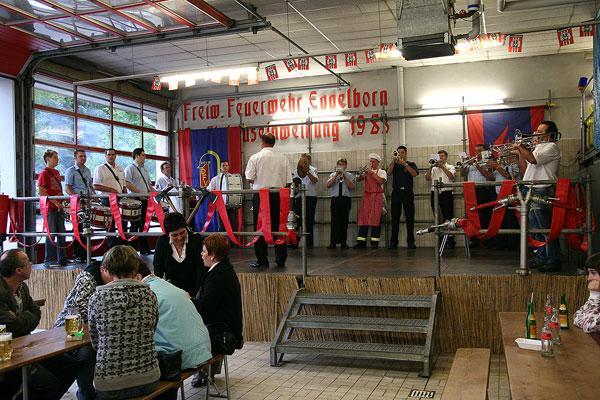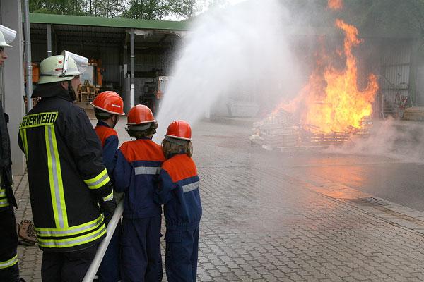 Große Augen gab es dann bei der Schauübung der Jugendfeuerwehr, bei der die zahlreichen Gäste den Feuerwehrnachwuchs in Aktion erleben konnten. Die Jungen und Mädchen zeigten mit einem Löscheinsatz an einem brennenden Holzhaus, was sie von ihren Ausbildern gelernt hatten. Mit Kaffee und Kuchen und einer abwechslungsreichen Speisekarte war für das leibliche Wohl der Gäste bestens gesorgt.
