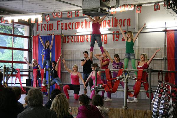 Auftakt zu den Festivitäten war das Dulles-Turnier am Freitag Abend, zu dem sich zahlreiche Teilnehmer gemeldet hatten. Am darauffolgenden Samstag hatte sich der Kindergarten angesagt: Nachdem die Brandschutzausbilder an zwei Terminen den Kindern im Kindergarten Wichtiges zum Umgang mit Feuer erzählt hatten, wollten sich die Kinder gemeinsam mit ihren Eltern die Feuerwehrfahrzeuge und Geräte ansehen.