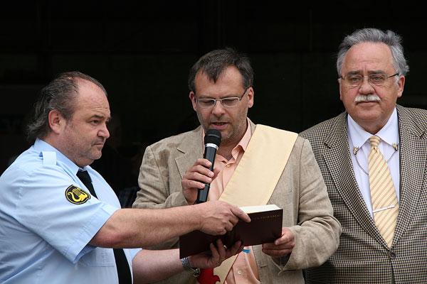 Bürgermeister Fritz-Hermann Lutz hat für den Umbau des Polizeifahrzeugs zum Feuerwehrmannschaftstransporters 2.500€ aus dem Gemeindehaushalt zur Verfügung gestellt.