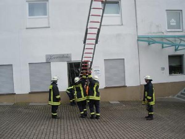 Eine Leiter ist im Brandfall der zweite Rettungsweg für die Bevölkerung und unser Fluchtweg im Ernstfall. In zwei Gruppen wurden zum einen die Steckleitern und zum anderen die 3-teilige Schiebeleiter eingesetzt.