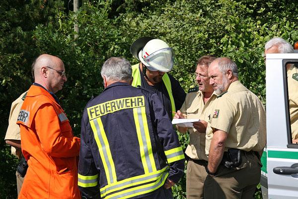 Nach einer ersten Lageerkundung forderte die Polizei weitere Kräfte sowie Mannschaften aus den Löschbezirken Habach und Eppelborn zur Amtshilfe an. Vor Ort wurde eine gemeinsame Einsatzleitung gebildet und das weitere Vorgehen besprochen.