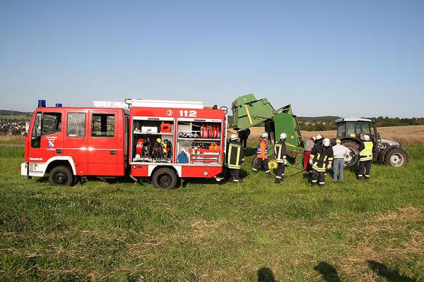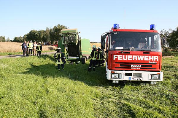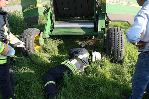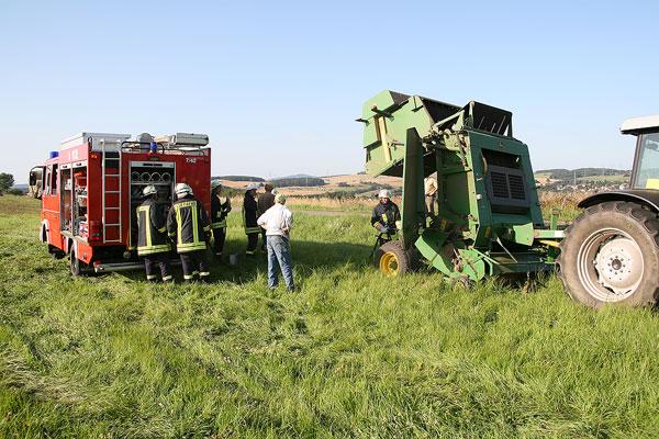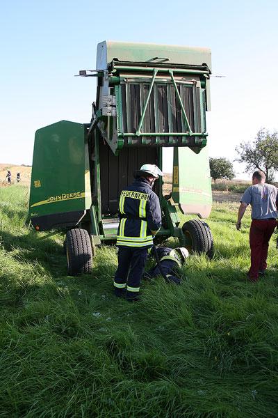 Gleichzeitig wurden auch brennende Strohreste, die sich noch immer in der Ballenpresse befanden, abgelöscht. An der Maschine entstand nach ersten Erkenntnissen durch die schnelle Reaktion des Bauern nur geringer Sachschaden. Die ebenfalls angerückten Kräfte aus Eppelborn wurden nicht mehr benötigt.
