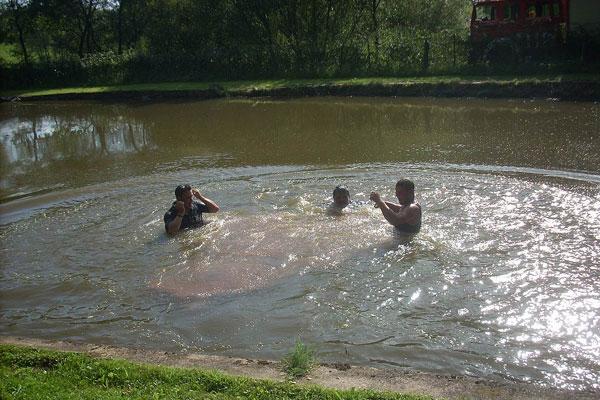 Die Besatzung des Fahrzeugs HLF 8/12 führte ebenfalls einen Löschangriff mit mehreren C-Rohren durch. Die Wasserversorgung des Fahrzeugs wurde ebenfalls durch eine Zuleitung der Pumpe am Weiher sichergestellt.