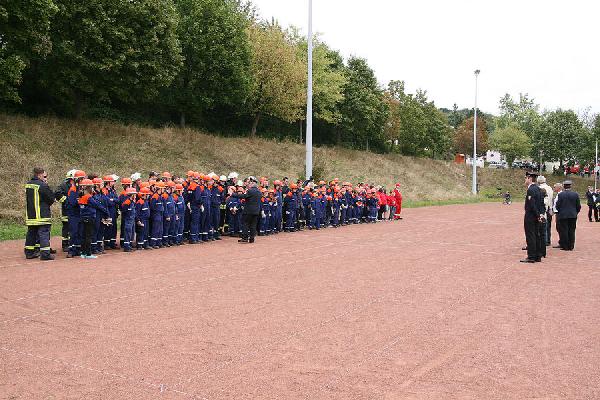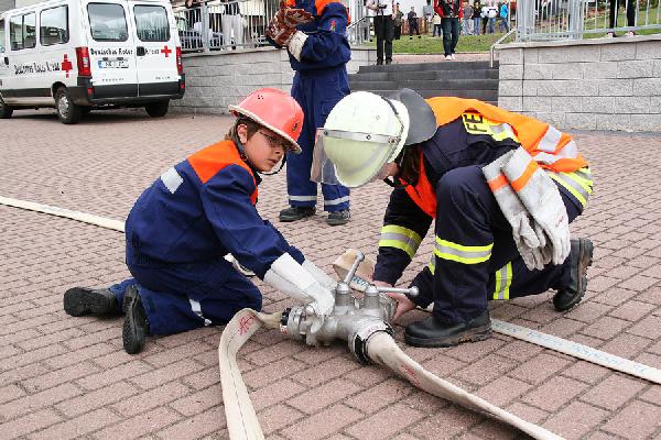 Einmal im Jahr demonstrieren die Jungen und Mädchen der Jugendfeuerwehren aller Löschbezirke der Gemeinde Eppelborn in einer großen Abschlussübung ihren Ausbildungsstand. In diesem Jahr war der neue Dorfplatz im Ortsteil Hierscheid der Schauplatz des Großeinsatzes am 13. September 2009.