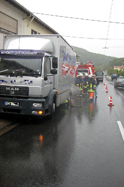 Ursache für die starke Rauchentwicklung war eine Überhitzung der Bremsanlage und des Antriebsstranges an der Hinterachse der Lkw. Mit der Schnellangriffseinrichtung des Tanklöschfahrzeugs wurde die Hinterachse abgelöscht und gekühlt. Eine Ausbreiten des Brandes konnte durch das schnelle Eingreifen verhindert werden.
