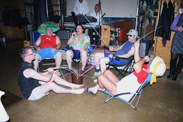 Anschließend wurde das Buffet eröffnet. Man konnte sich hier noch einmal für das nachfolgende Programm kräftigen. Showmaster Uwe Schulz sowie das Moderatorengespann Claudia Schulz und Thorsten Fuchs präsentierten Bilder und Geschichten aus dem vergangen Jahr und einen Ausblick in 2010. Stephan Blum alias "Stephan Lagerfeld" präsentierte die neue Kollektion für 2010 und erhielt mit seinen Modells tosenden Applaus und sogar die Rufe nach Zugabe auf sich. Nicht zu vergessen ein Fußballspiel der besonderen Art, Live aus dem Mühlbacher Hof. Und natürlich durfte ein Strandbesuch mit Sangria aus Eimern nicht fehlen.