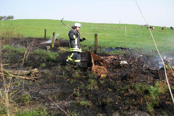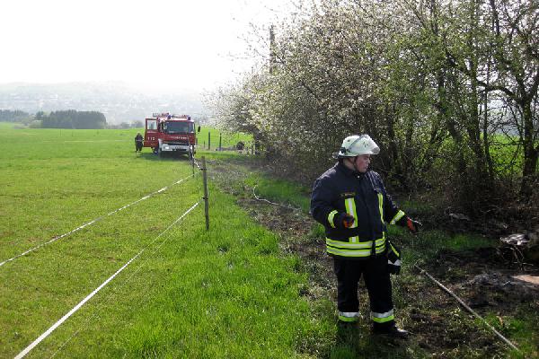 Mit einem C-Rohr und Brandpatschen konnten die Einsatzkräfte den Brand schnell löschen. Nachdem die letzten Glutnester gelöscht waren, war der Einsatz für die Feuerwehr nach rund einer Stunde beendet.