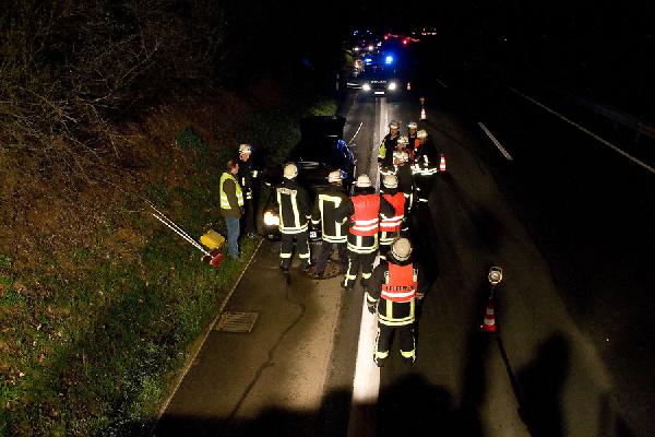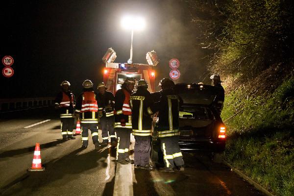 Um die in einer Kurve liegende Unfallstelle bei Dunkelheit abzusichern und die Verkehrsteilnehmer rechtzeitig auf die Unfallstelle hinzuweisen, rückten die Einsatzkräfte aus dem Löschbezirk Eppelborn mit insgesamt vier Einsatzfahrzeugen an. Die Unfallstelle wurde ausgeleuchtet und der ausgelaufene Dieselkraftstoff nach Verladen des Unfallfahrzeugs mit Bindemitteln aufgenommen.