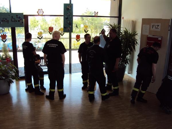 In Gruppen aufgeteilt, wurde ein Rundgang durchgeführt. Dabei wurden sämtliche wichtige Wegepunkte angesprochen und begutachtet, z.B. wo sich die Absperrventile der Gasleitung  befinden oder wo der Hauptwasserhahn für die Versorgung des "Feuerwehrhydranten" liegt. Es wurde auch nochmal darauf hingewiesen das sämtliche Oberflurhydranten, die sich auf dem Gelände befinden, nicht mehr einsatzbereit sind.