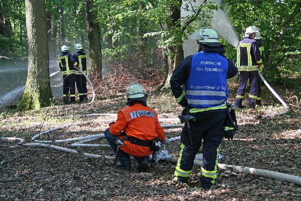 Eppelborn. "Brand in einem Waldstück auf dem Eppelborner Hellberg" lautete die Vorgabe der diesjährigen Waldbrandübung am 14. August im Löschbezirk Eppelborn. Denn einmal im Jahr wird in einer gesonderten Übung die Brandbekämpfung und Wasserversorgung an einer entlegenen Einsatzstelle in einem der Waldgebiete in der Gemeinde Epppelborn geprobt.