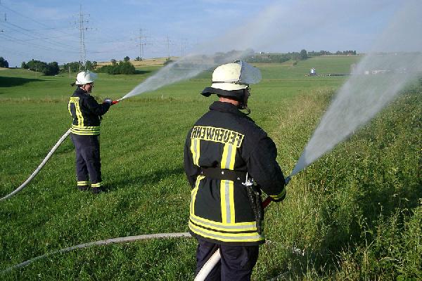 Der praktische Teil der Übung fand in einem kleinen Waldstück in der Nähe der Kläranlage Bubach statt. Es wurde angenommen, dass es zu einem Brandausbruch in dem Waldstück gekommen sei. Sofort nach dem Erreichen des „Einsatzortes“ wurde damit begonnen, den angenommenen Brand mit mehreren C-Rohren über den Fahrzeugtank des HLF 8/12 zu bekämpfen.