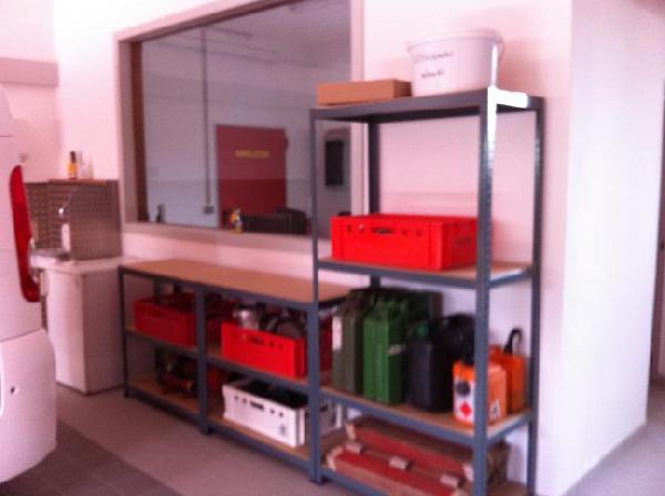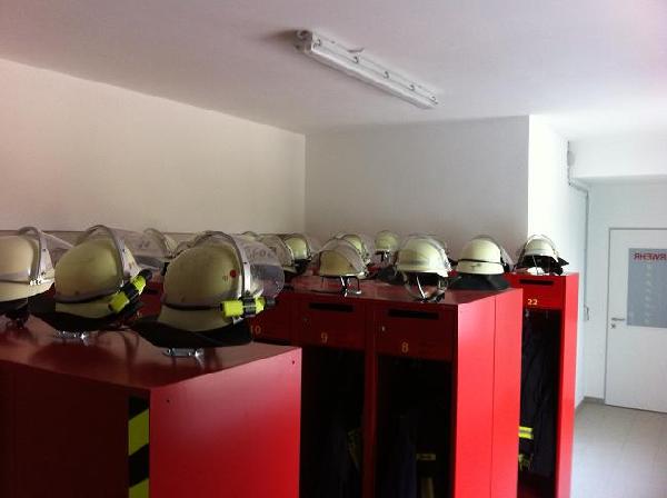 Vorher waren die Einsatzuniformen an einem persönlichen Haken direkt an den Wänden der Fahrzeughalle zu finden und wurden so ständig schädlichen Stoffen (Abgase) ausgesetzt.