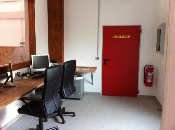 Da dies nicht mehr länger tragbar war, musste eine Umkleide mit persönlichen Spinden und Duschgelegenheiten errichtet werden.