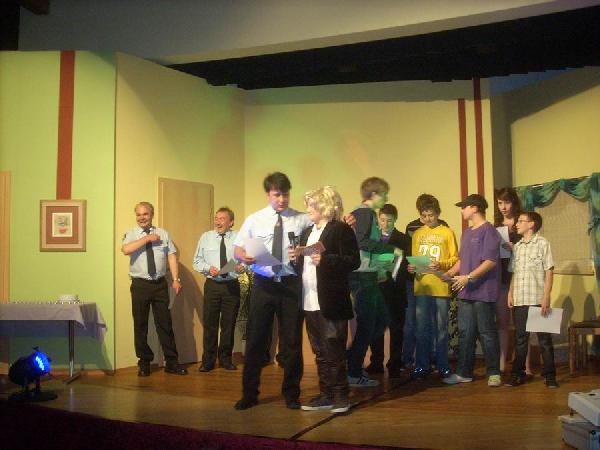 Ein unterhaltsames Programm hatte die Jugendfeuerwehr mit Ihren Betreuern einstudiert. In einer nachgespielten Sendung von "Wetten dass…" waren nicht nur interessante Wetten mit den dazugehörigen Wett–Paten, Tanzvorführungen und Sketche zu sehen, auch die Moderatoren waren zum Verwechseln ähnlich. Nur gab es in der Sendung beim Familienabend anstatt der Michelle Hunziger einen Michael Hunziger. Auch eine Außenwette wurde per Beamer in die Halle übertragen.