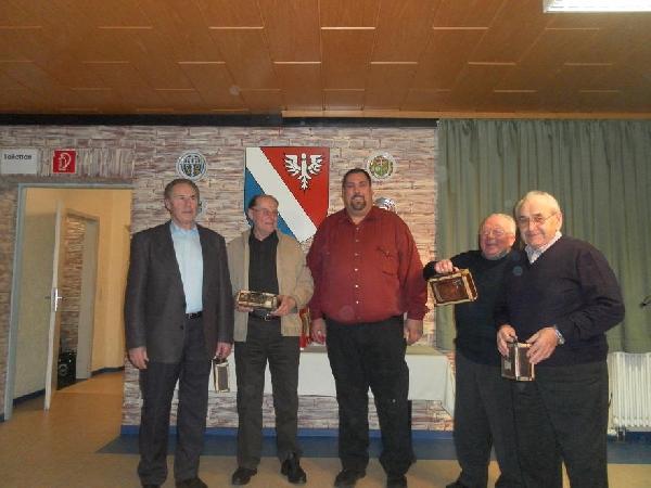 Nachdem alle gesättigt waren kam unangekündigter Besuch zu uns: Es war der heilige St. Nikolaus mit einem großen Sack voller Geschenke. Als er einigen Kameraden dir Ohren lang gezogen hatte, gab es für die anwesenden Kinder Geschenk, sofern sie ihm ein Gedicht aufsagen konnten. Am Ende erhielt doch jedes Kind ein Geschenk vom Nikolaus. Ebenso gab es ein kleines Geschenk für die Kameraden der Alterswehr sowie für die Partnerinnen der gesamten Kameradschaft.