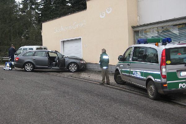 Der Fahrer eines Audi fuhr frontal gegen ein Gebäude