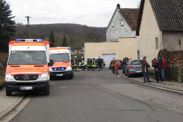 Dirmingen. Ein Großaufgebot an Rettungskräften wurde am Morgen des 14. Januar 2011 zu einem Verkehrsunfall nach Dirmingen gerufen: Der Fahrer eines Audi war in einer Kurve in der Straße "Zur Alten Mühle" geradeaus gefahren und frontal gegen ein Gebäude geprallt.
