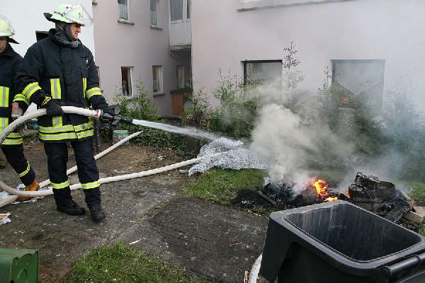 Eppelborn. Schwarzer Rauch und Brandgeruch stiegen am Abend des 10. April 2011 hinter dem Seniorenheim St. Josef in der Ortsmitte von Eppelborn auf. Anwohner in der Dirminger Straße, die auf das Geschehen aufmerksam wurden, handelten richtig und alarmierten über Notruf 112 die Feuerwehr.