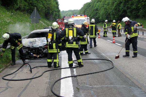 Ein Ersthelfer, der den Unfall bemerkt hatte, reagiert sofort und unternahm mit einem Feuerlöscher erste Löschversuche. Nachdem das Feuer weiterbrannte, wollte er vorbeifahrende Lkw anhalten, um mit deren Feuerlöscher den Brand zu löschen. Doch angeblich hatte keiner der Fahrer die vorgeschrieben Lebensretter dabei. Gemeinsam mit dem inzwischen eingetroffenen Wehrführer, der weitere Feuerlöscher in seinem Dienstfahrzeug hatte, konnten die Flammen bis zum Eintreffen der Löschfahrzeuge im Griff gehalten werden.