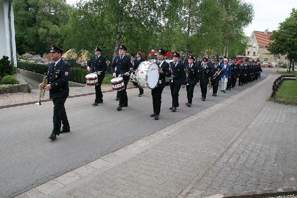 Am Sonntag spielten befreundete Fanfaren- und Musikzüge und sorgten fürdie musikalische Unterhaltung der Gäste. Da feiern auch hungrig macht, hatte die Feuerwehrküche ein umfangreiches Speisenangebot vorbereitet, so dass niemand hungrig nach Hause gehen musste.