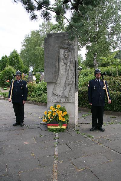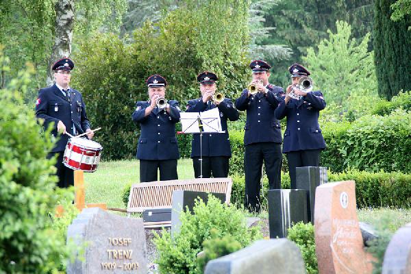 Mit einer Kranzniederlegung auf dem Friedhof am Samstag Abend gedachten die Mitglieder der Einsatzabteilung zusammen mit der Jugendfeuerwehr und der Altersabteilung sowie Vertretern von DRK und DLRG den verstorbenen Kameraden. Begleitet wurde der Zug dabei vom Fanfarenzug Eppelborn.