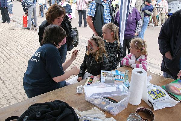 Auf dem Vorplatz am Feuerwehrgerätehaus konnten die Kinder bei dem überwiegend sonnigen Wetter mit Unterstützung der Jugendfeuerwehr ihr Geschick als Feuerwehrmann mit einer Kübelspritze beweisen. Auch das DLRG und der Judo-Club unterstützten die Feuerwehr mit einem großen Kinderprogramm und boten Kinderschminken und Vorführungen an. Und wie auch schon im Vorjahr konnten sich die Besucher am Stand des Motorsportclubs Eppelborn eine persönliche Rettungskarte für ihr Fahrzeug erstellen lassen.