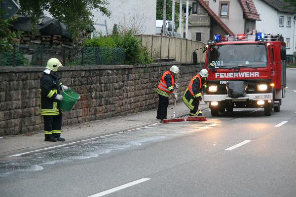 Die Einsatzkräfte behandelten die Verschmutzung mit Bindemitteln und konnten die Einsatzstelle gegen 21:30 an die Polizei übergeben. Die Feuerwehr war mit zwei Fahrzeugen und insgesamt 25 Feuerwehrleute im Einsatz. Der Verursacher ist unbekannt.