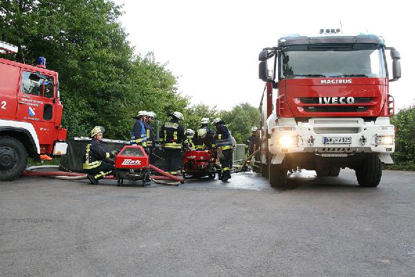 Um die Wasserversorgung sicherzustellen, sollte mit Tanklöschfahrzeugen ein sogenannter Pendelverkehr eingerichtet werden. Dazu wurden am Übungsort große, mehrere tausend Liter fassende Faltbehälter aufgebaut, aus denen die Strahlrohre der Löschmannschaften gespeist wurden. Die Tanklöschfahrzeuge entnahmen dazu Löschwasser aus einem Hydranten im Industriegebiet und lieferten ihre nasse Fracht an diesem Übergabepunkt ab.